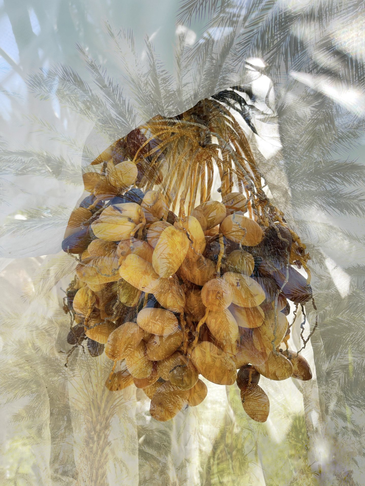 Phoenix Dactylifera, Mother Tree, an exploration of resilience, sustenance and the profound interconnectedness between nature and humanity. I use the Date Palm as a central symbol to represent the life-giving force of the natural world, and the cultural heritage rooted in Mesopotamia and Coachella Valley Organic Date Farm. The Medjool date more than just a tree the date palm embodies perseverance in harsh environments, offering nourishment and shelter for centuries. Through Banners hand printed on Date Sacs, Poetry & Cuniform Symbols, Paintings deriving my colors from the earth/soil beneath the trees, Photography, Mandalas built in situ, Sculptures and Forms, I capture the essence of this iconic tree, it’s unwavering strength, its fruitful abundance and it’s enduring legacy. Endeavoring to share this powerful story spanning 6,000+ years, evoking the nurturing spirit of the feminine, while simultaneously paying homage to the historical significance of Mesopotamia as the cradle of civilization and the enduring role of women within it’s narrative. The Mother Tree is an invitation to connect with the past, a celebration of nature’s enduring power and a call for mindful stewardship of our planet.